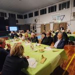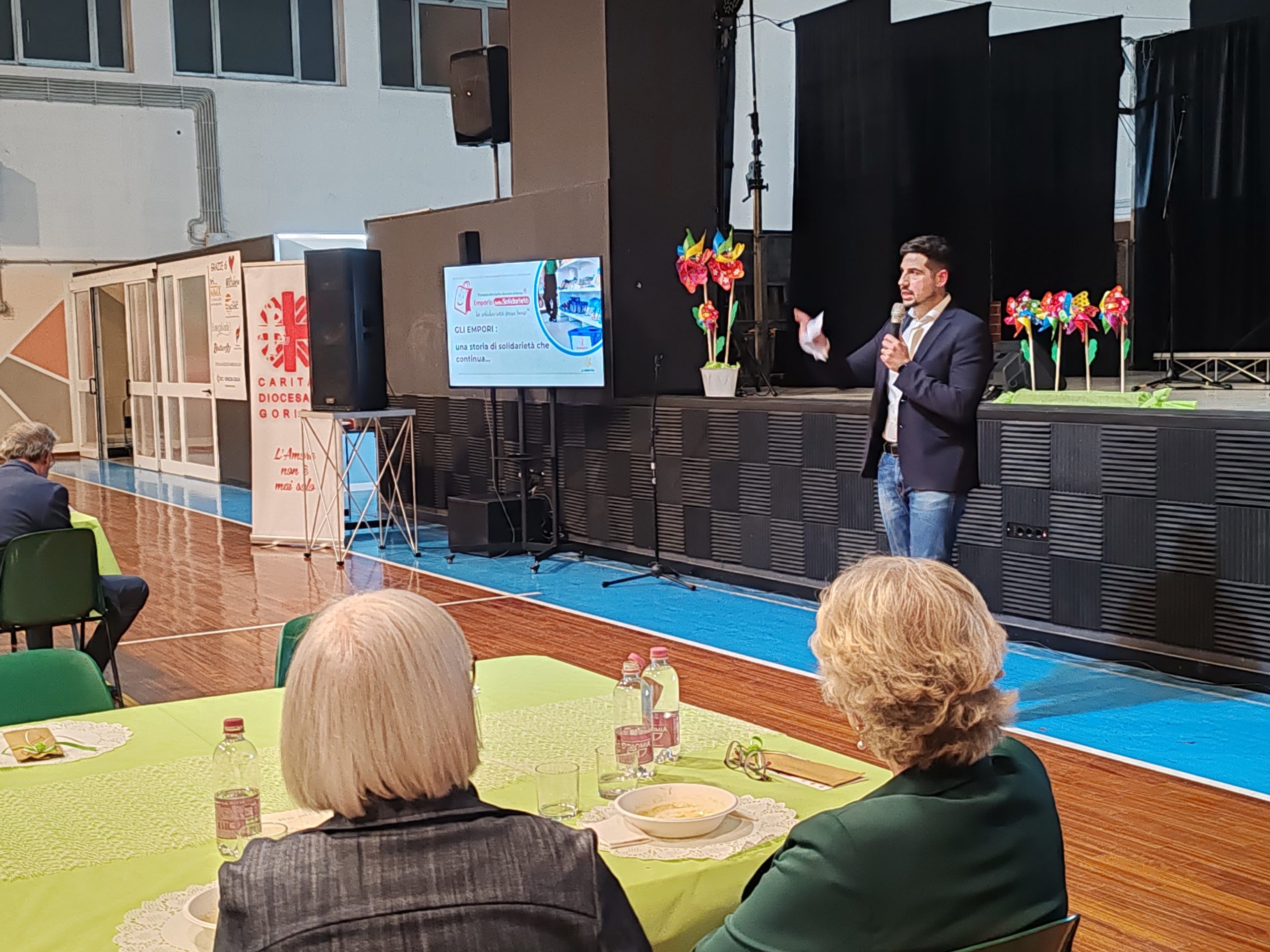 Nel corso della gustosissima cena – sapientemente preparata dalle abili mani della “Brigata San Giuseppe”con i prodotti delle stesse aziende e realtà artigiane che collaborano con gli Empori e servita dai giovani membri del Circolo Noi aps, nonché allietata dal bel canto delle “Onde Medie” dell’associazione Piccolo Coro di Monfalcone diretto dalla Maestra Francesca Moretti – il coordinatore degli Empori della Solidarietà, Adriano Tropea, ha anche illustrato ai presenti l’operato degli Empori, compiuto dai numerosi volontari, più di 90, nonché di riportare alcuni dei dati recentemente presentati nel Bilancio 2025 dell’attività. “Un Emporio della Solidarietà rappresenta la possibilità di scelta – ha ricordato Tropea -. È un valore in più per una famiglia che a volte si sente essa stessa il problema, quando in realtà non lo è. Avere possibilità di scelta della propria spesa vuol dire avere la possibilità di essere di nuovo protagonisti della propria vita. Gli Empori sono poi anche dialogo, incontro, valorizzazione della persona; sono un abbraccio verso le persone che sono ultime e le realtà locali che scelgono di sostenere gli Empori in realtà stanno supportando proprio le persone”.
