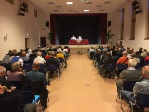 L’intervento di don Michele è stato seguito con grande attenzione dai presenti nella sala di S. Nicolò, ed è stato accompagnato da molte persone che prendevano appunti e annuivano ascoltando.