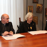 Le immagini della conferenza stampa, svoltasi lunedì 7 marzo 2016 in Curia a Gorizia, in occasione del rinnovo dei protocolli fra gli enti impegnati nella gestione e nel sostegno agli Empori della Solidarietà di Gorizia e Monfalcone (foto di Sergio Marini).