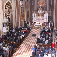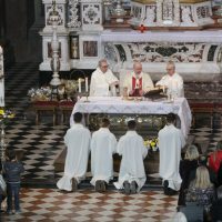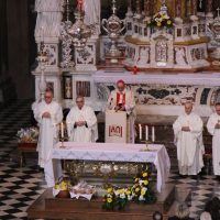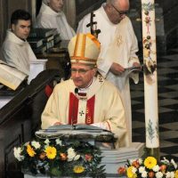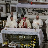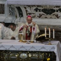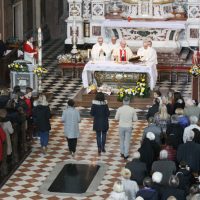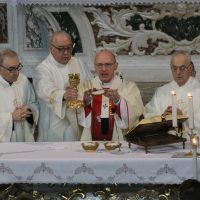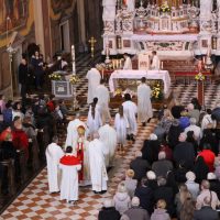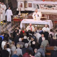La mattina del giorno di Pasqua, 1 aprile 2018, dopo avere assistito alla celebrazione del Resurrexit, dei fedeli di lingua slovena in cattedrale, il vescovo Carlo ha presieduto la messa in S. Ignazio (foto Sergio Marini)